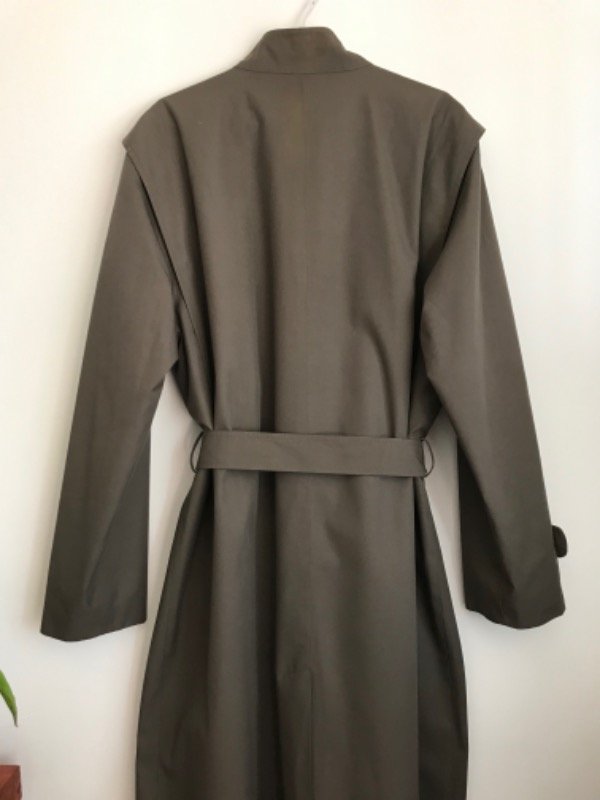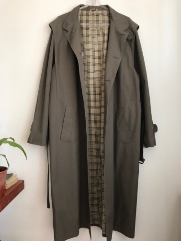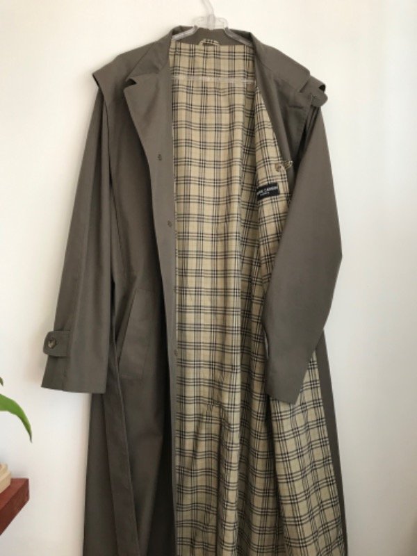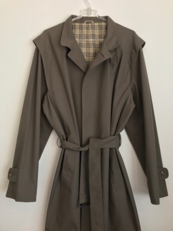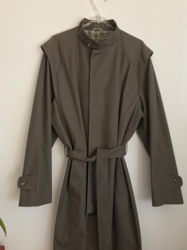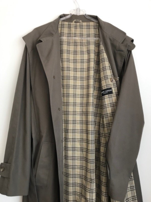 Trench vintage igual a nuevo Pierre Cardin Hecho en Italia, forrado con la típica estampa de Bb, de gabardina color cemento, cuellito tipo mao, con cinturón y bolsillos, súper elegante