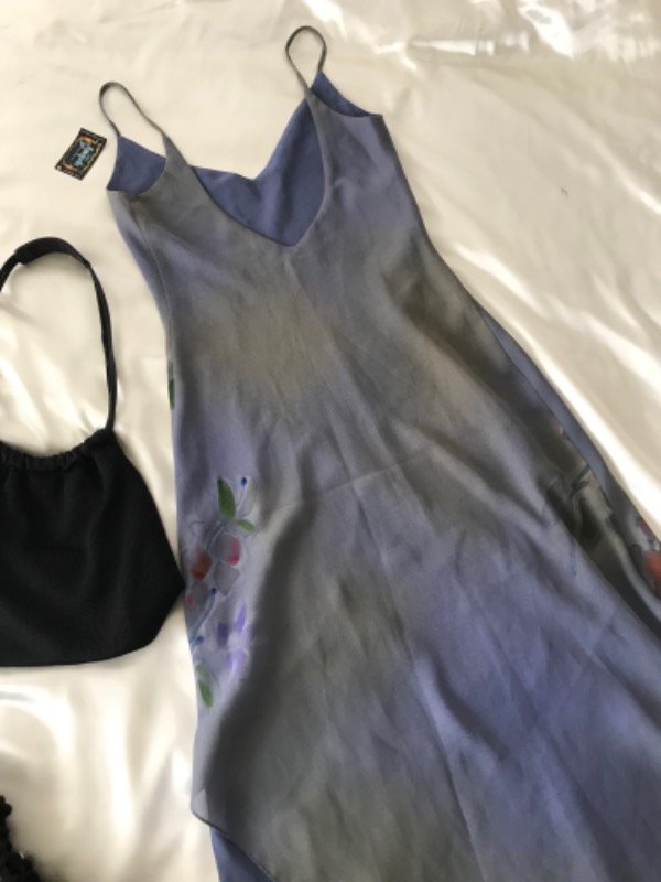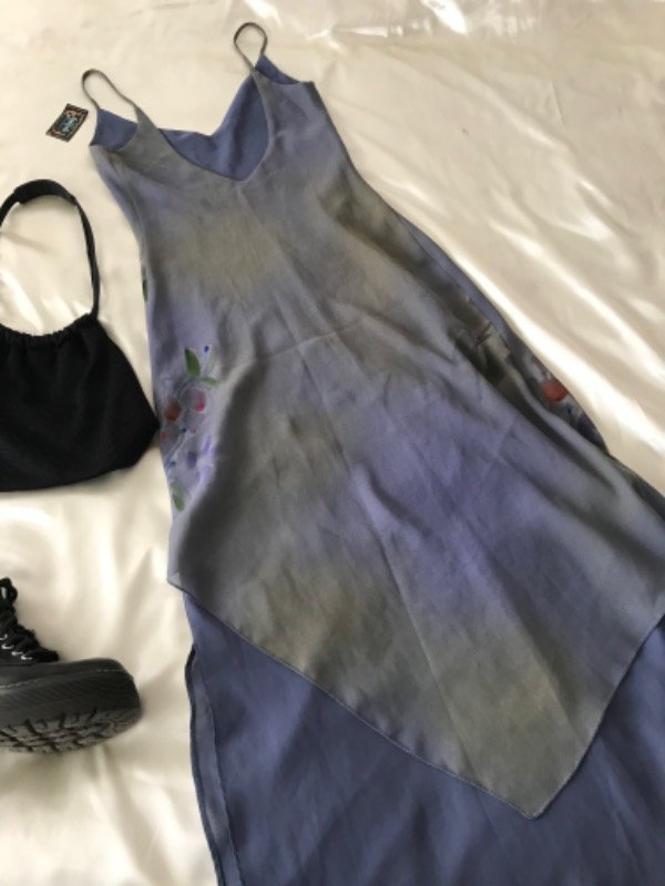 Vestido dosmilero de gasa forrada, tiritas y corte irregular