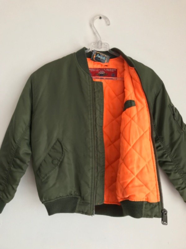 Camperita aviador original americana vintage Louis Phlilippe junior, con abrigo, interior naranja con bolsillos, doble cierre y puños