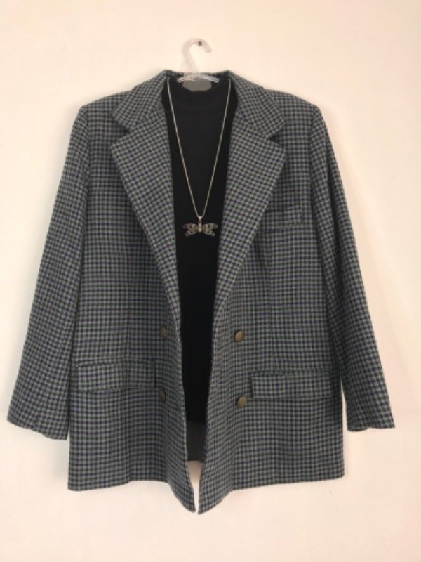 Blazer vintage forrado, cierre cruzado con bolsillos y bellos botones