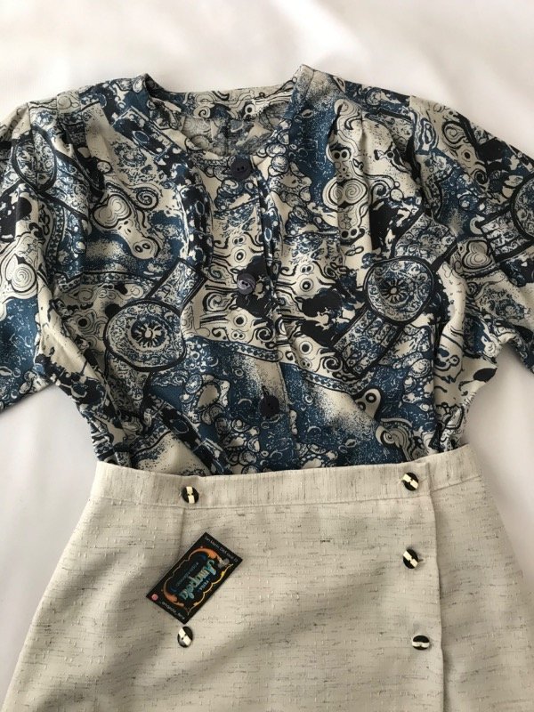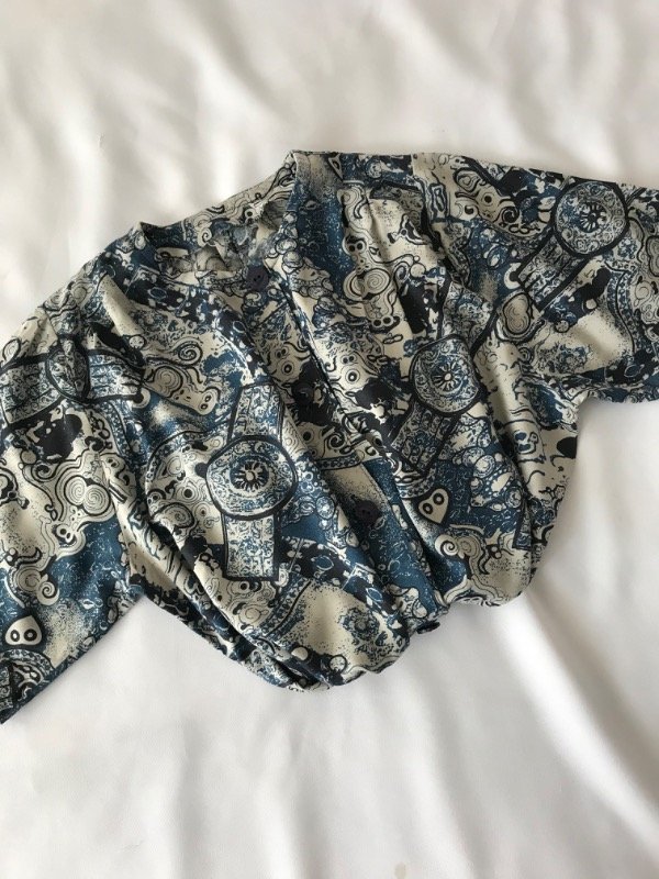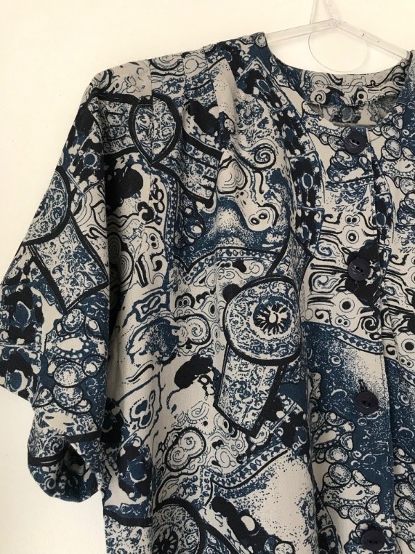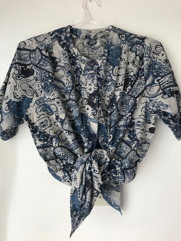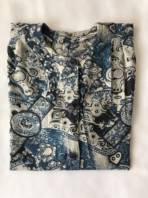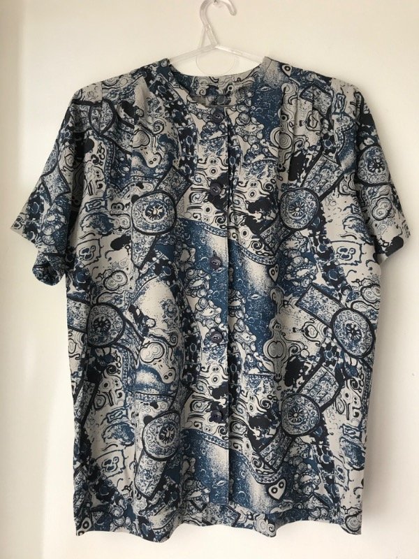 Blusa vintage estampada cuello redondo, tela fresca con mucho algodón