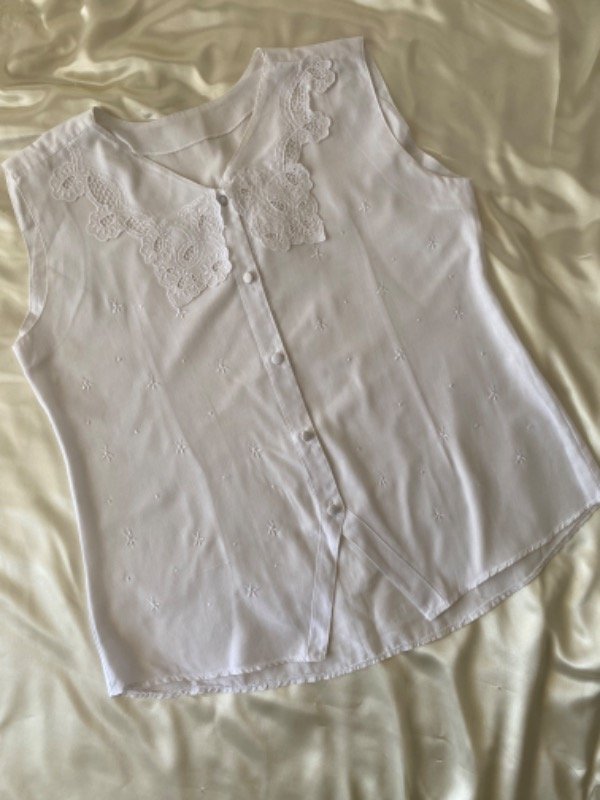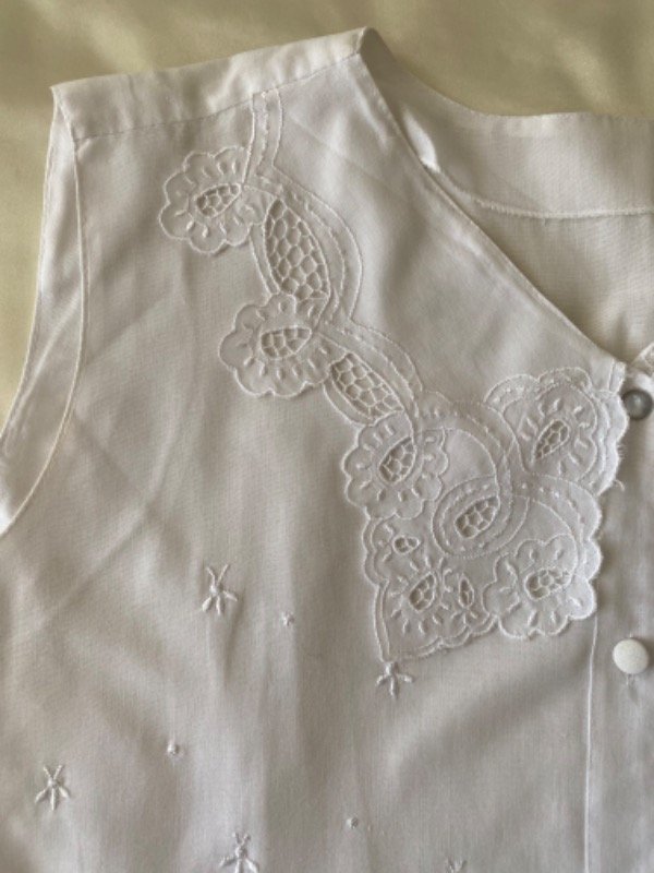 Camisa plumeti sin mangas con cuello grande bordada