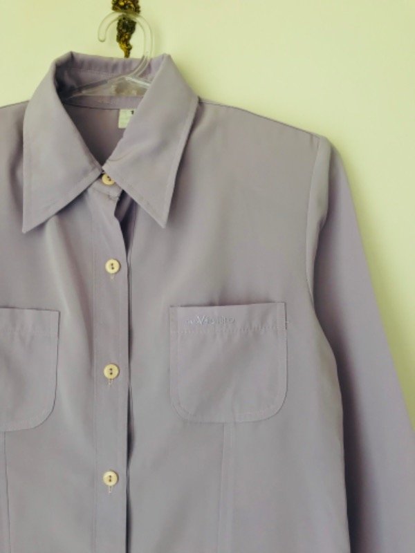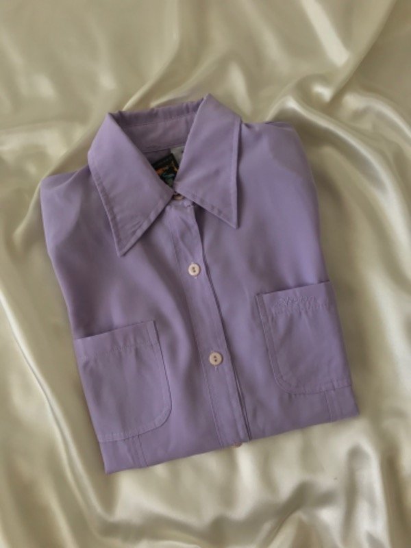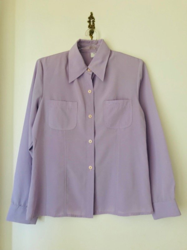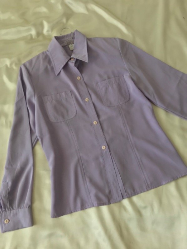 Camisa lila algo entallada,