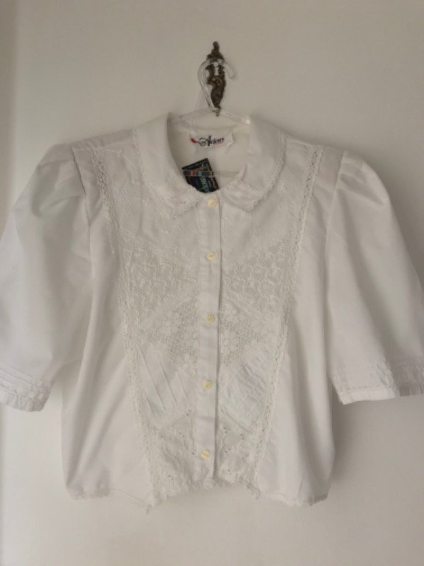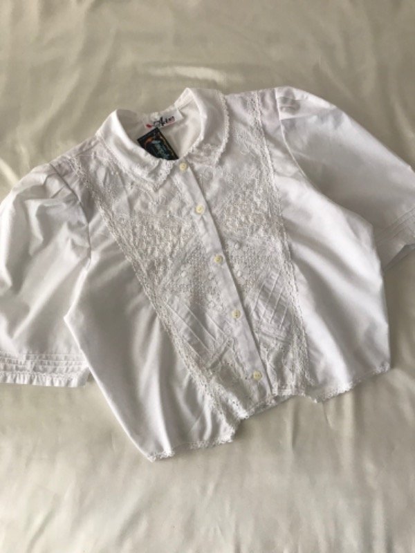 Camisa vintage bordada, con apliques en brodery y puntillas, mangita tipo princesa con pinzas y alforzas