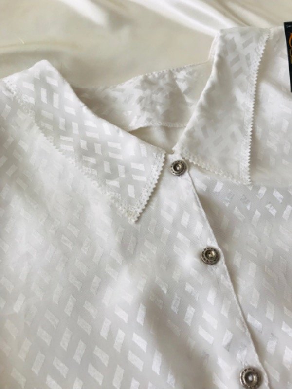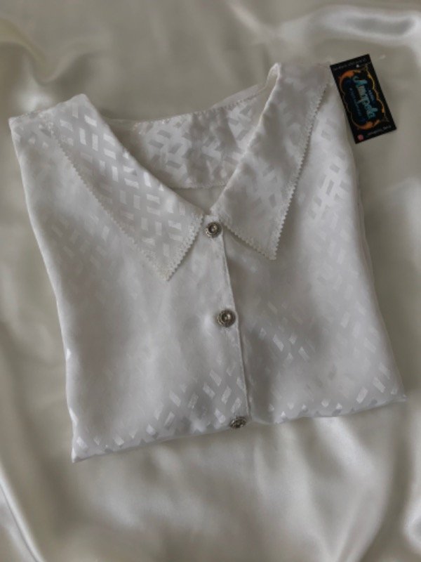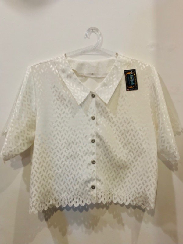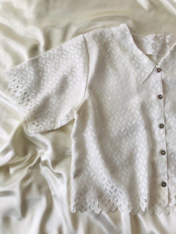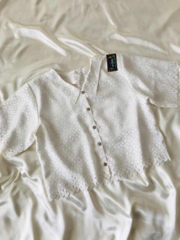 Camisa vintage manga corta, tela super especial con hermosos detalles en cuello y bordes