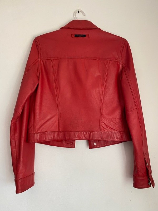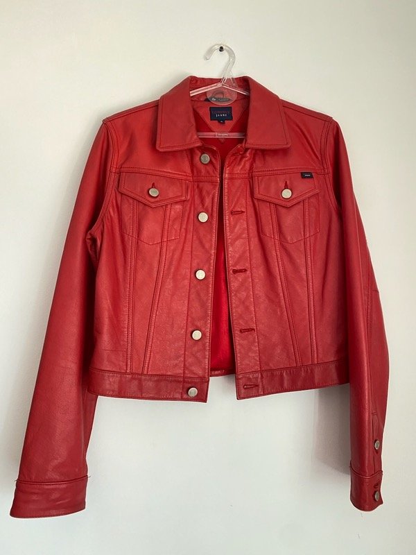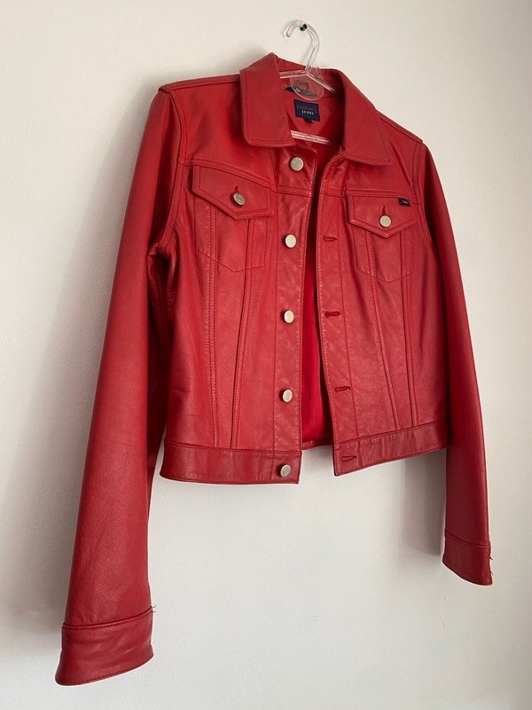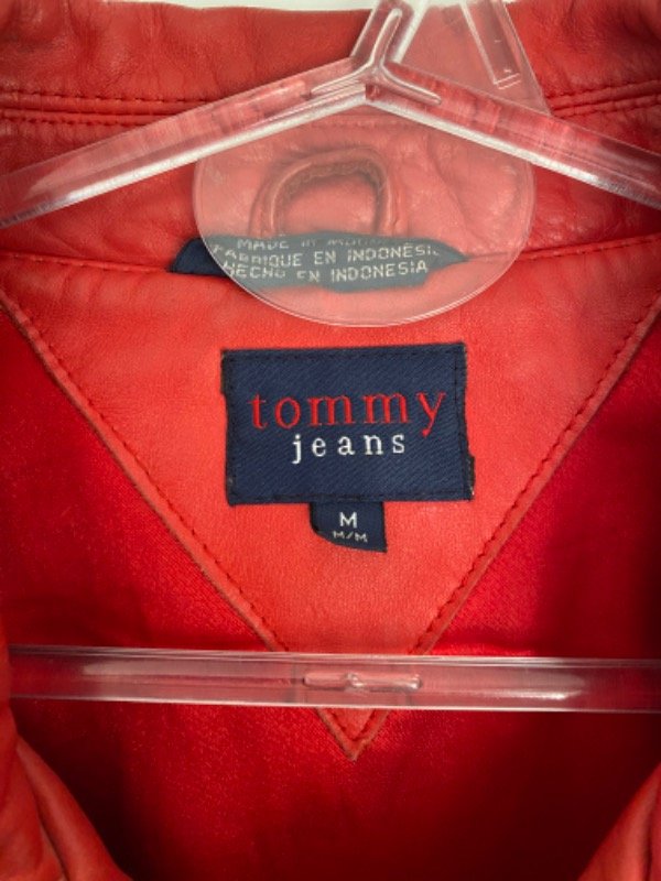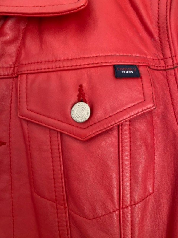 Chaqueta de cuero rojo Tommy Hilfiger talle M (pequeño) corte clásico de campera de jean al cuerpo