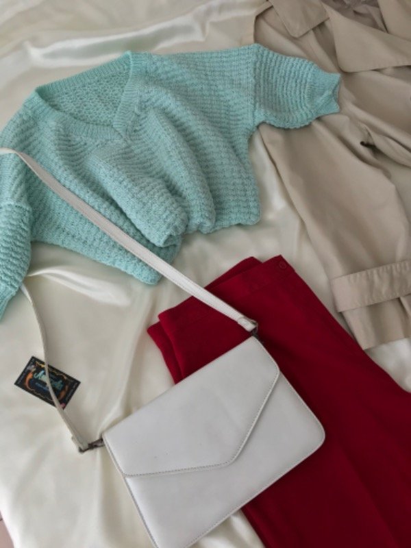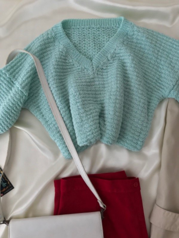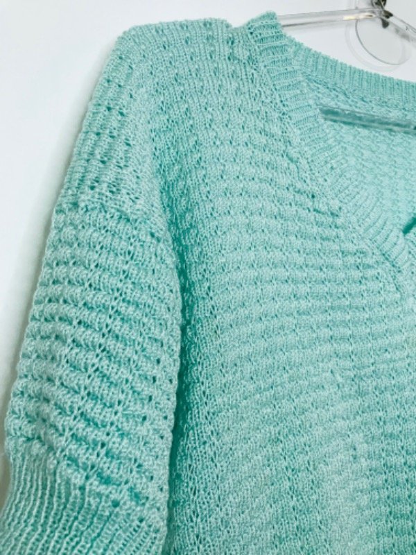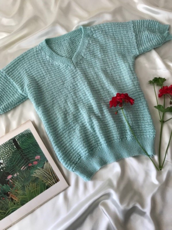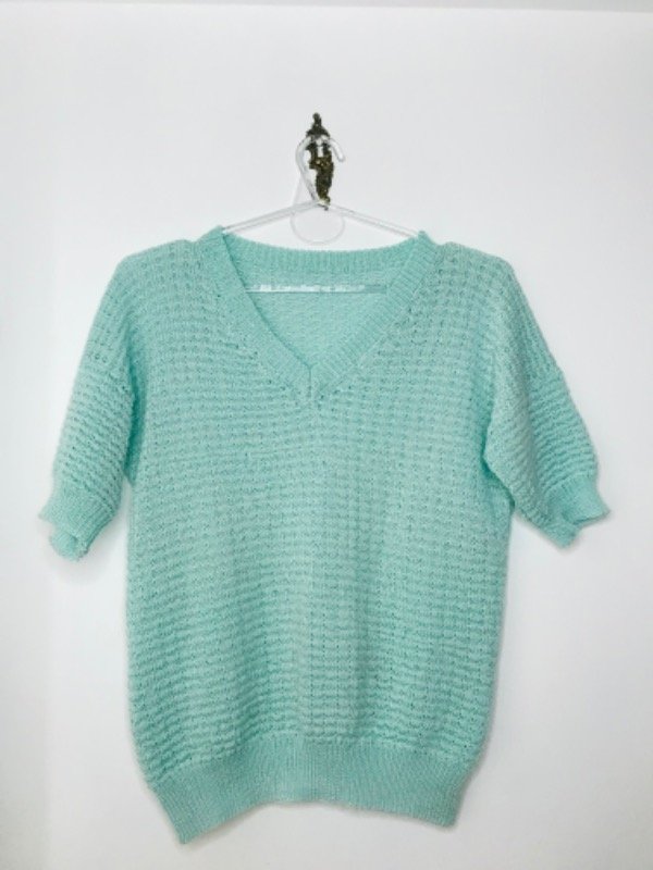 Remera de hilo vintage verde agua, con puño en cintura hermoso punto de tejido, podes usarla escote en v o al revés