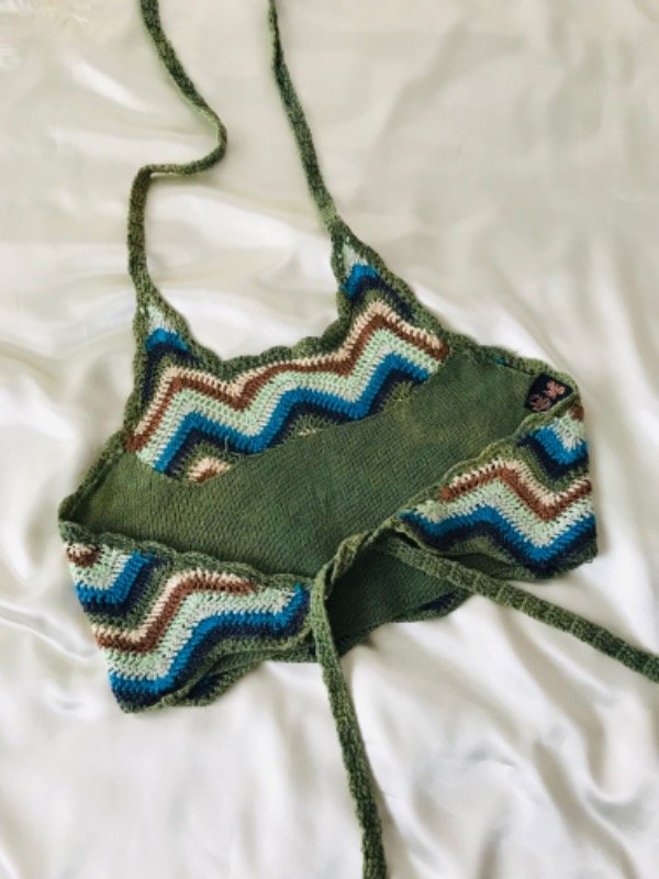Medidas: contorno mínimo 75cm de ahí se alarga atando a la medida, largo 34cm